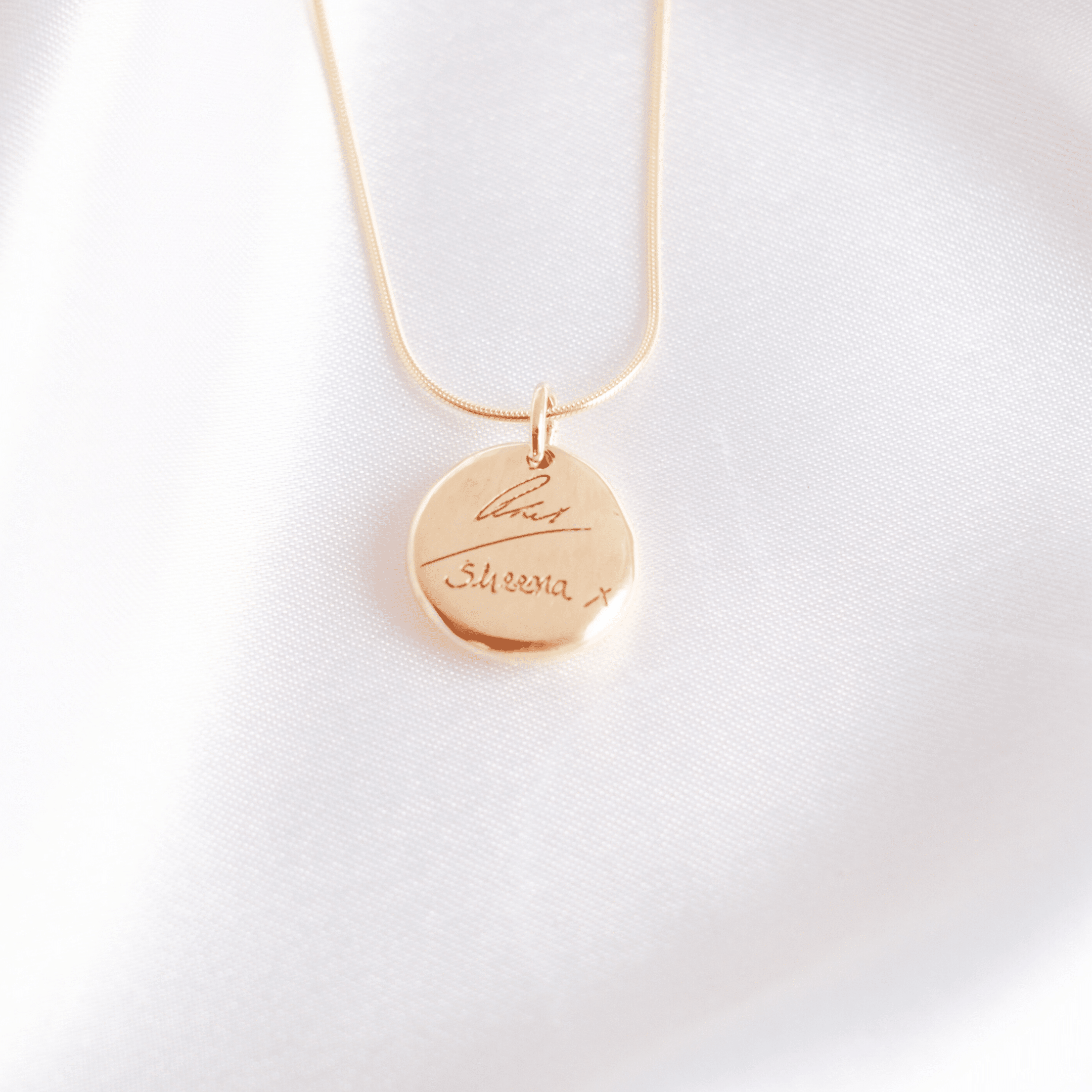 Our laser engraving service allows us to inscribe exact handwriting, fingerprints, or even delicate drawings onto your piece. From a handwritten note found in a birthday card, to a child’s doodle or a thumbprint pressed onto paper, we can hold that moment forever in precious metal.