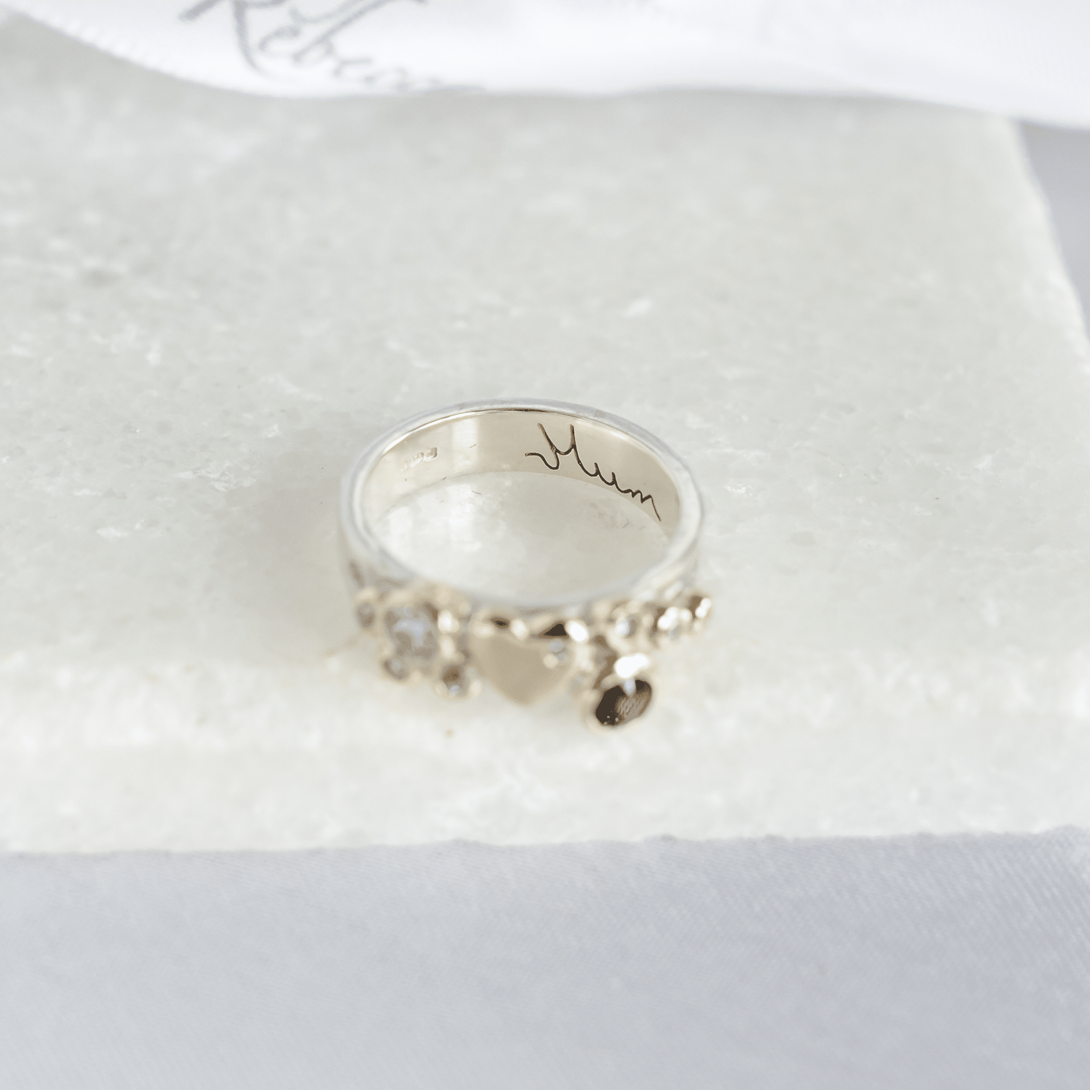 Have you inherited some gold from a loved one and have a sentimental card with their handwriting on it? We can melt the gold down to create a new remodelled ring with a sentimental stone and have the cherished handwriting incorporated into the ring band, for example.