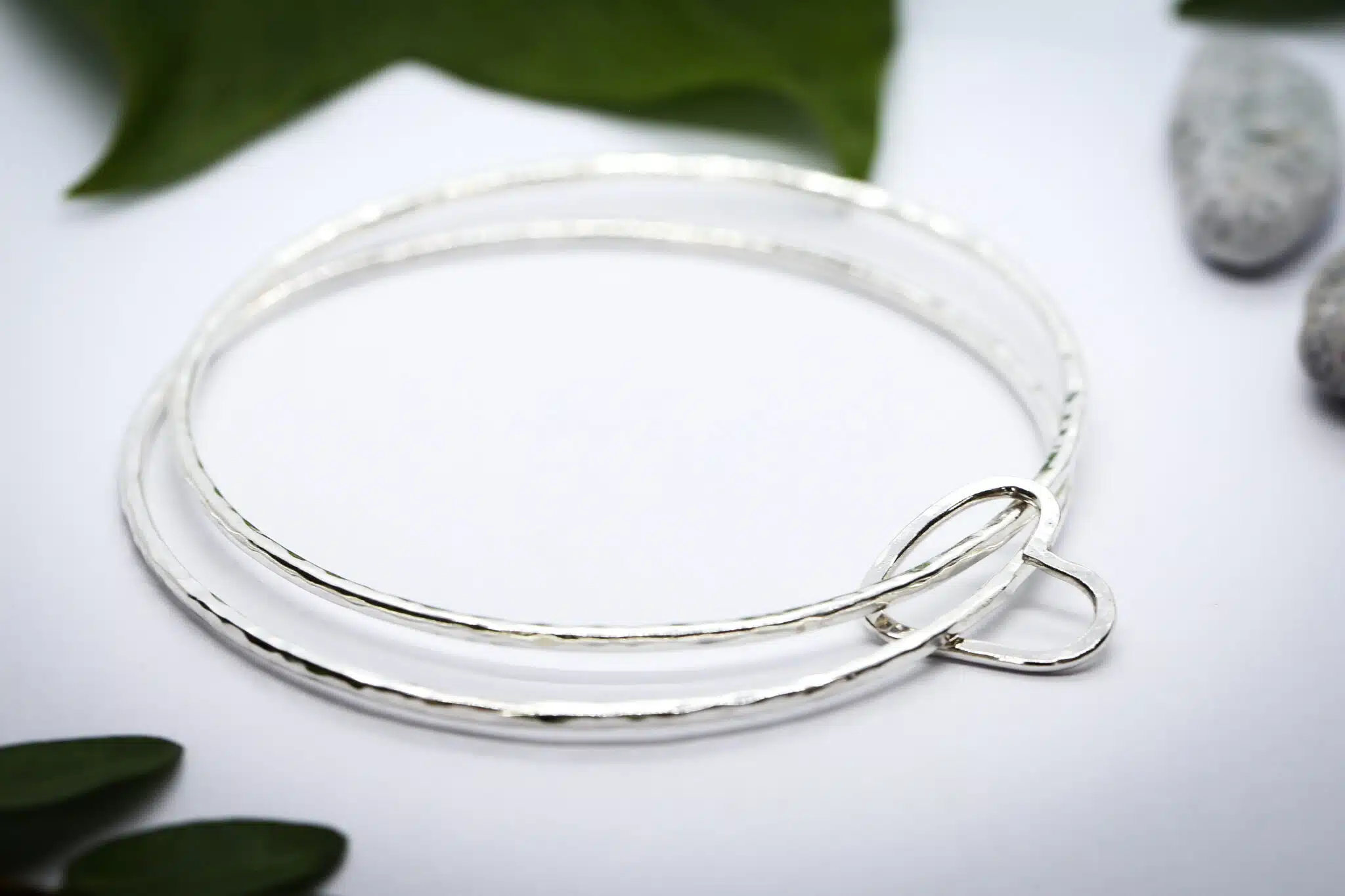 This lovely double hammered bangle has connecting outline hearts that float around the bangles – symbolic of 2 people being held together with hearts of their children – holding all their precious hearts in her hands.