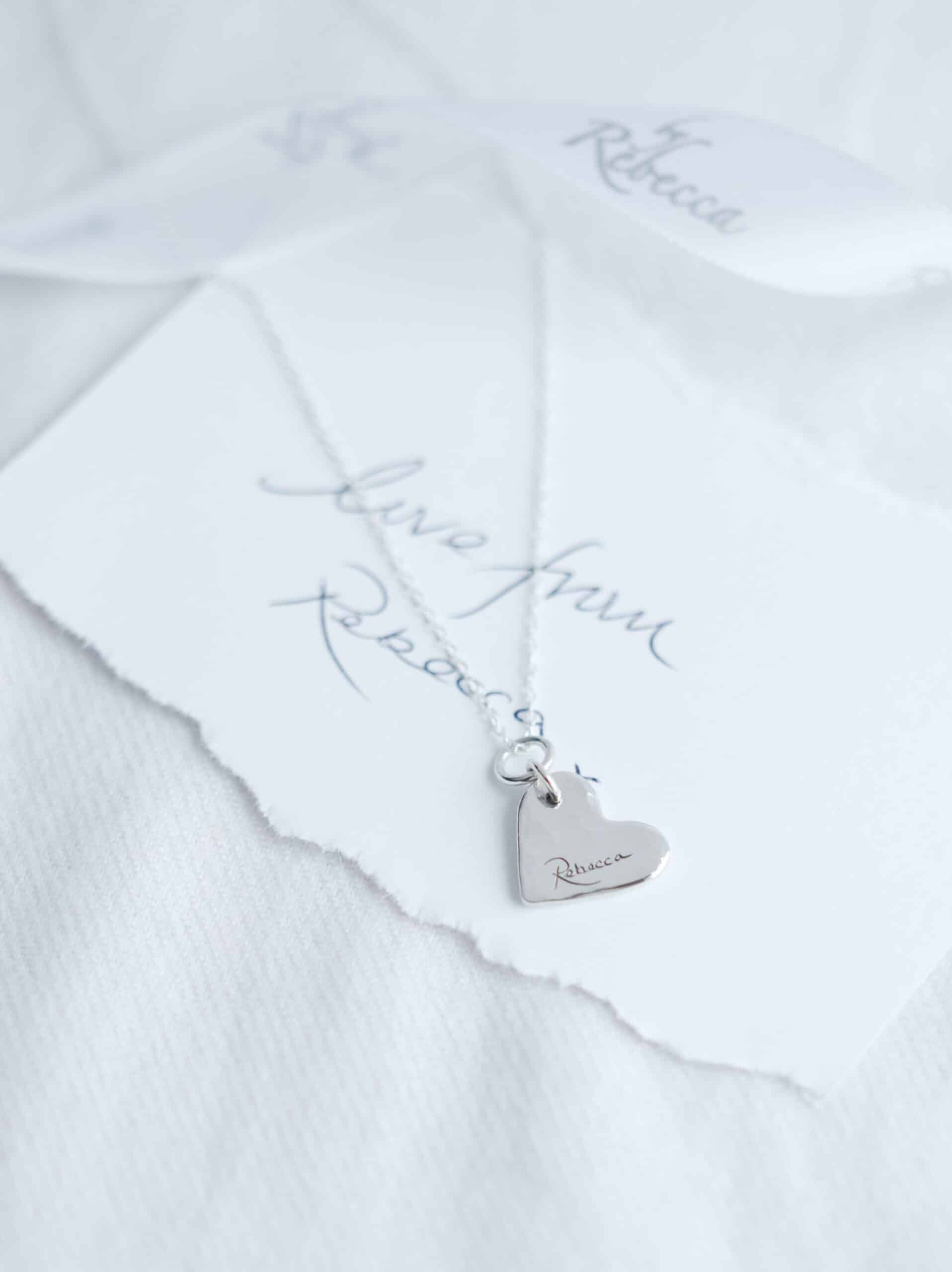 Our laser engraving service allows us to inscribe exact handwriting, fingerprints, or even delicate drawings onto your piece. From a handwritten note found in a birthday card, to a child’s doodle, a beloved paw print or a thumbprint pressed onto paper, we can hold that moment forever in your piece of jewellery.