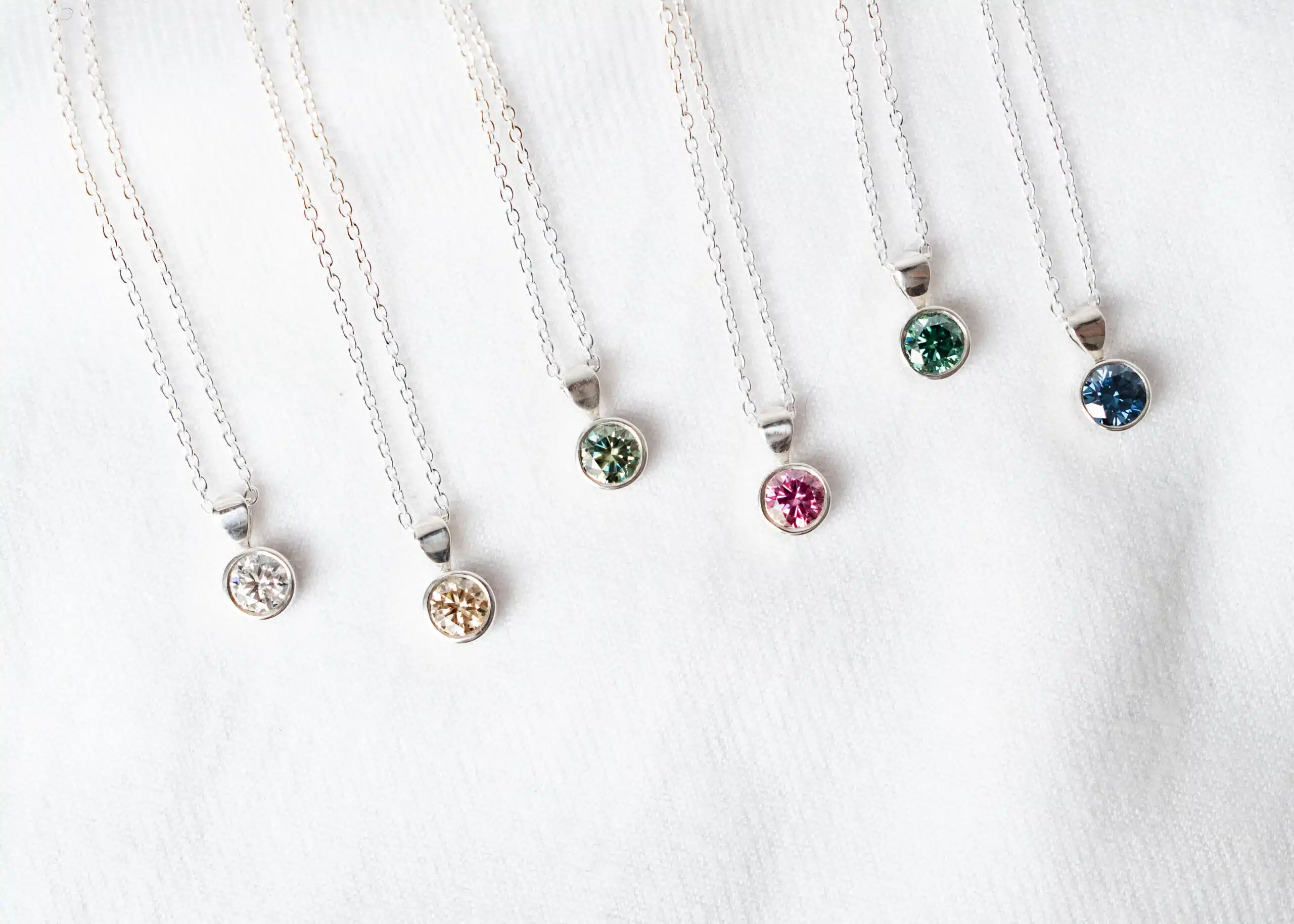 Moissanite Colours – Clear, Emerald Green, London Bright Blue, Champagne, Teal, Pink and Grey and Rainbow (GRA Certified Moissanites, you receive a GRA certificate for your stone with your purchase)