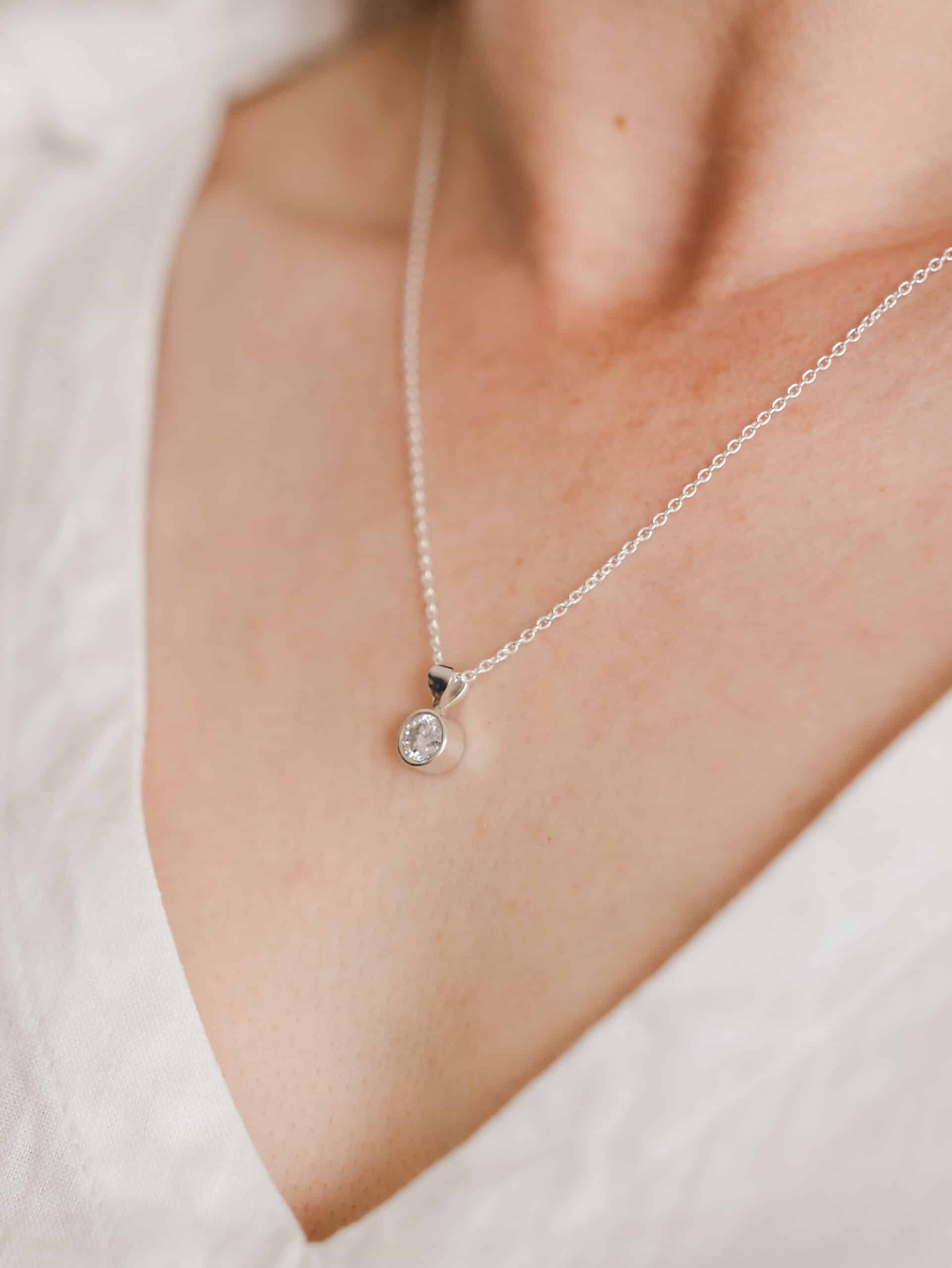 Home > Shop > Memorial Jewellery Collections > Memorial 6mm Moissanite Pendant Necklace – Cremation Ash or Pet Hair