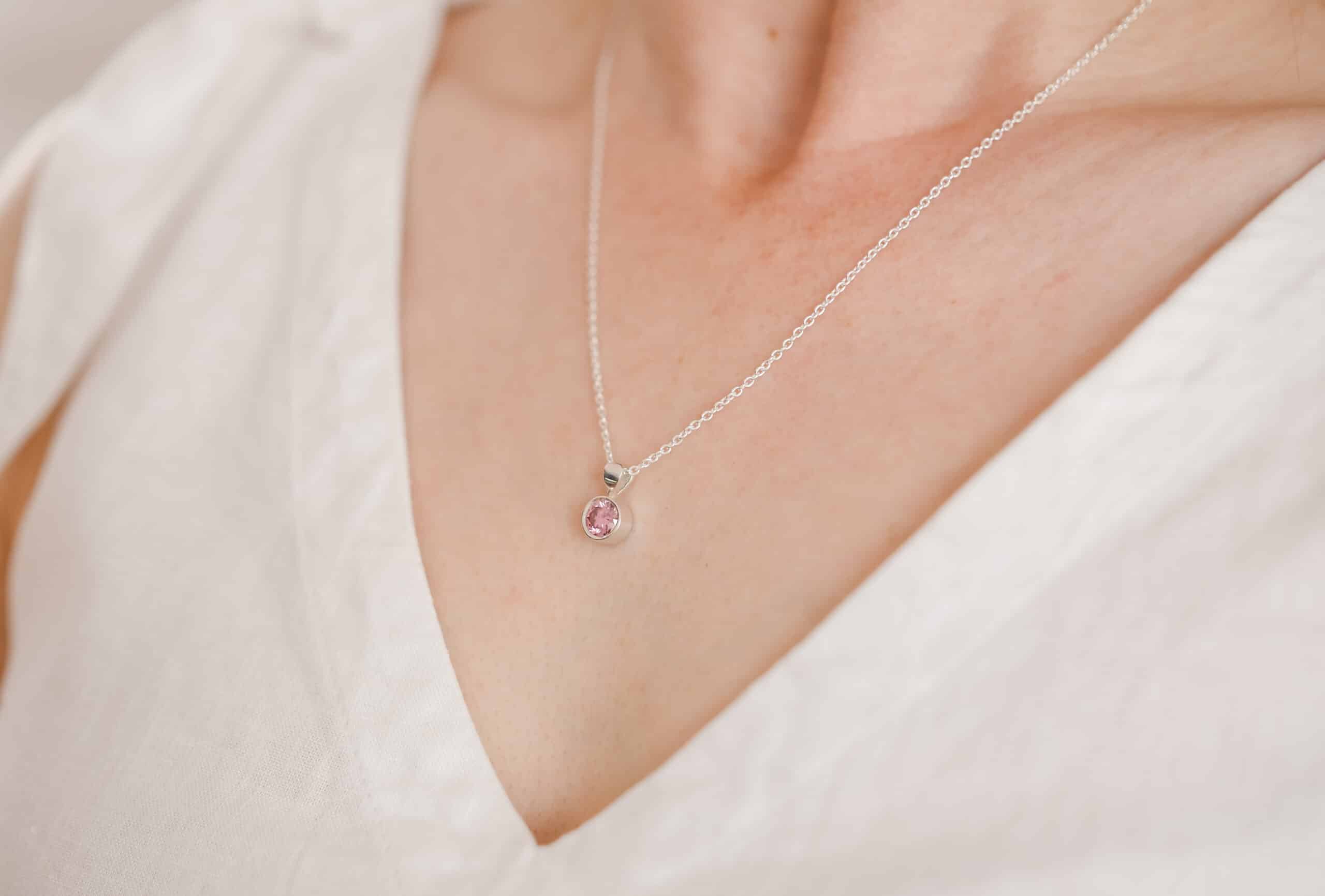 6mm Stone set in solid sterling silver pendant with your precious ashes encased behind the stone
