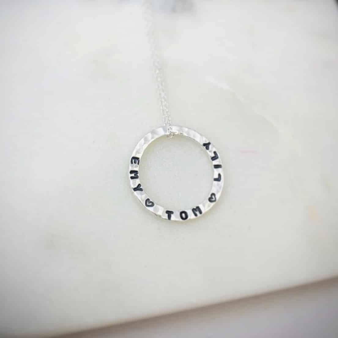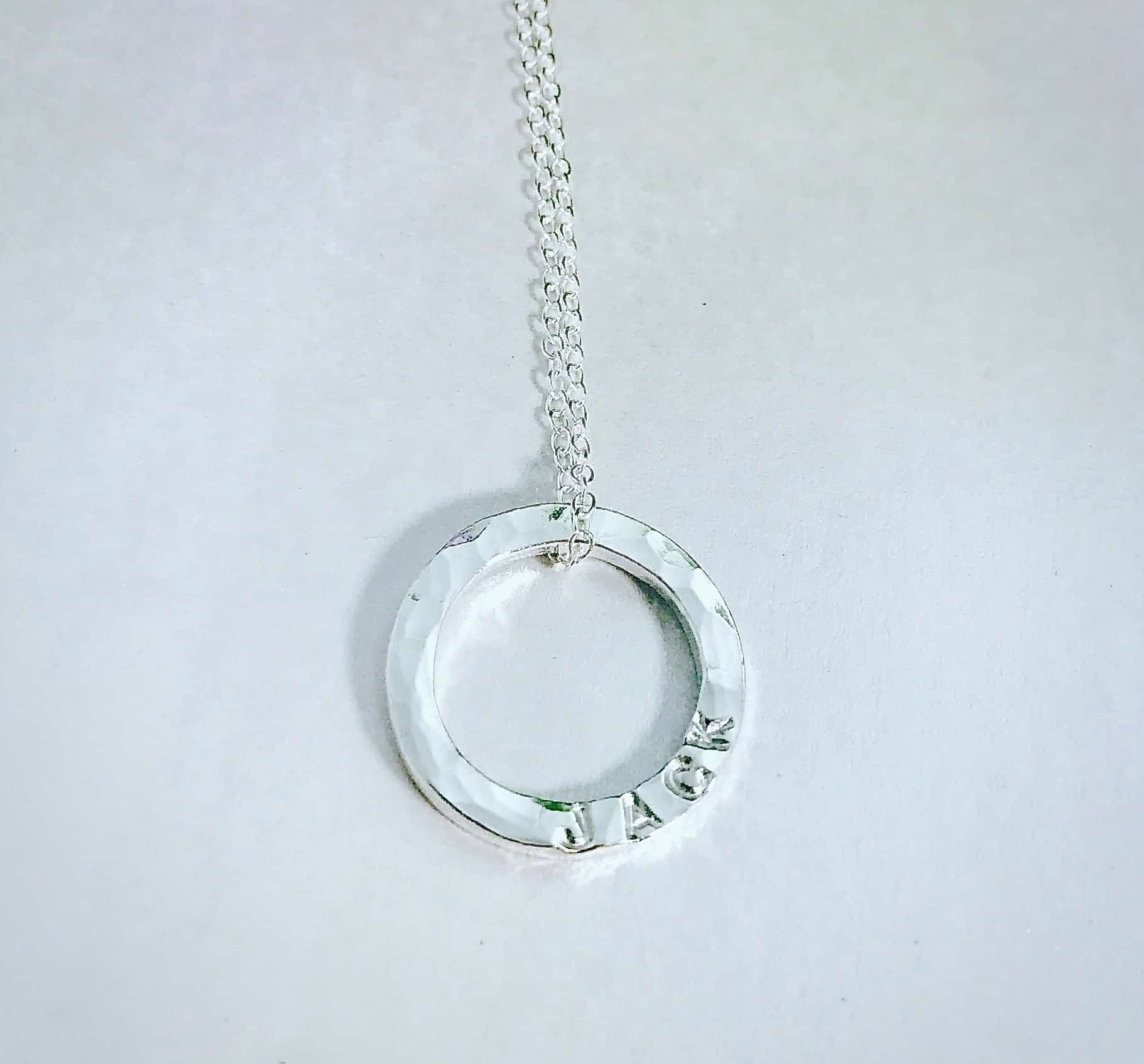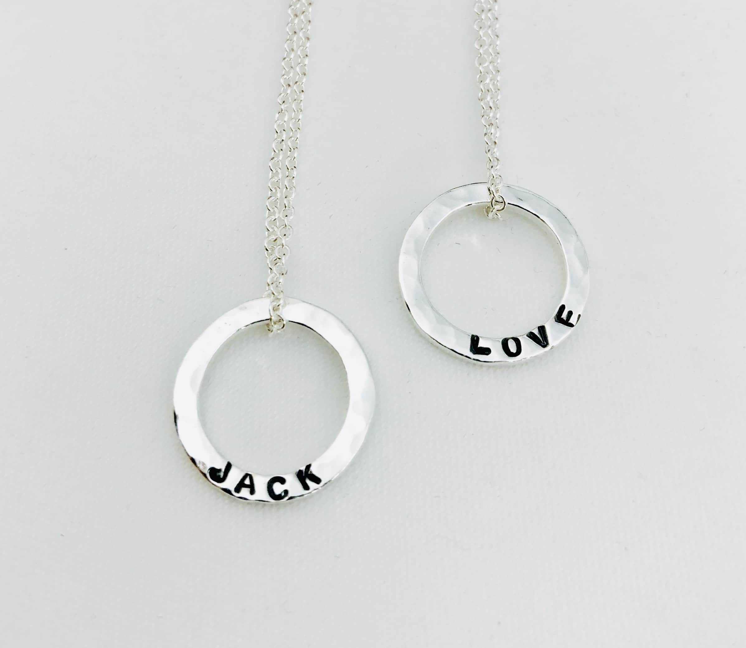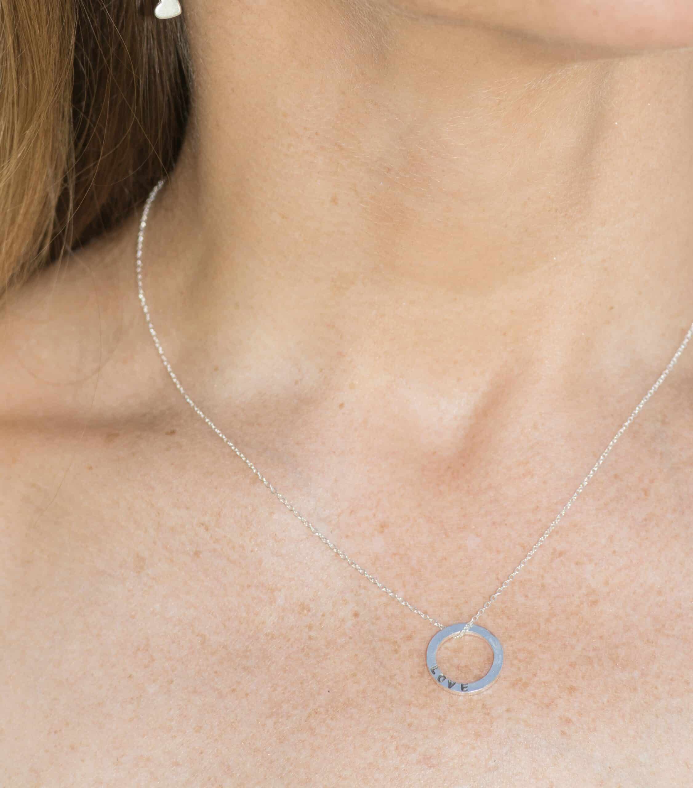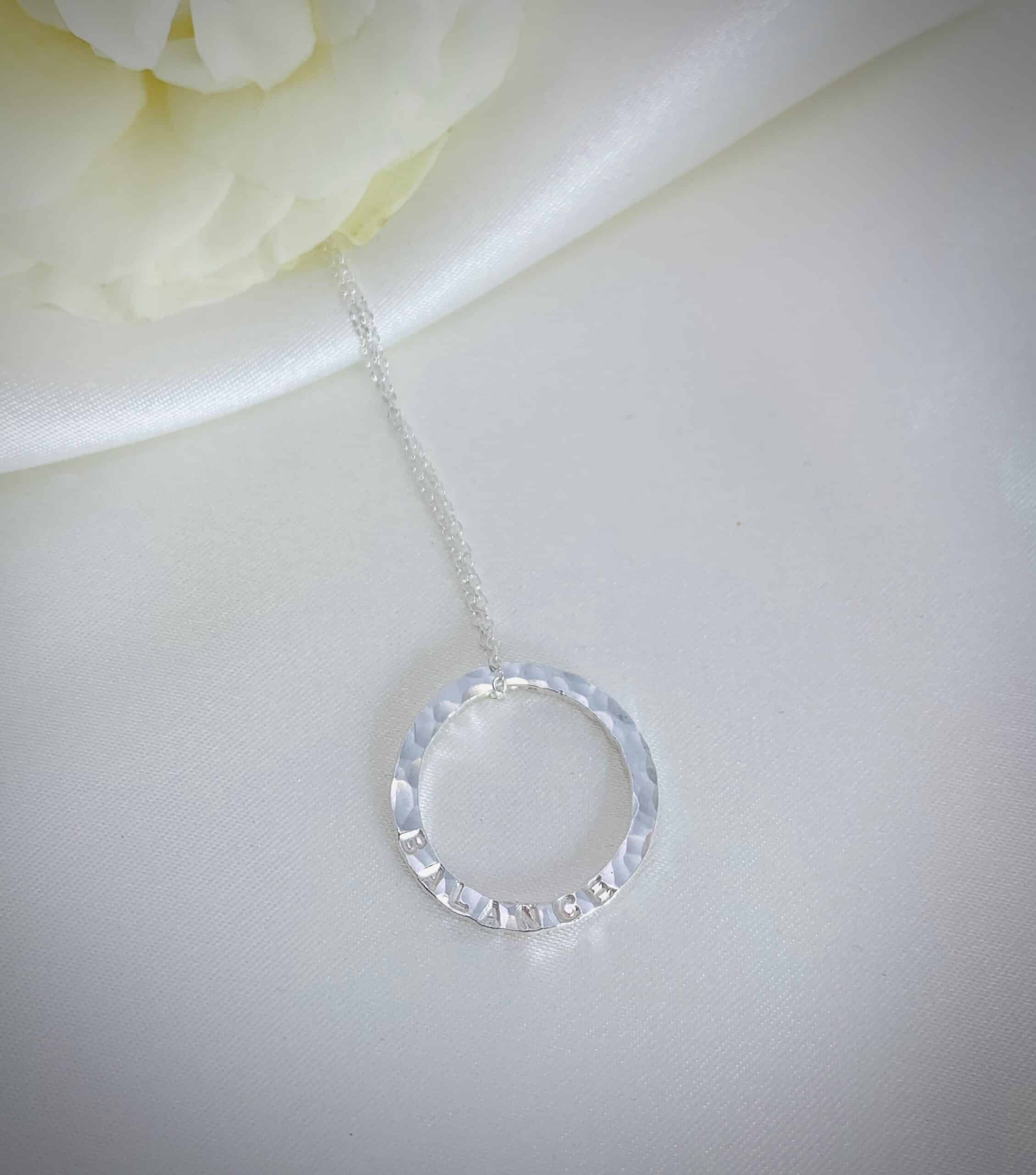 Mini Affirmation Circle Necklace – textured chunky circle  for a very simple yet classic necklace design – personalised with your own words
