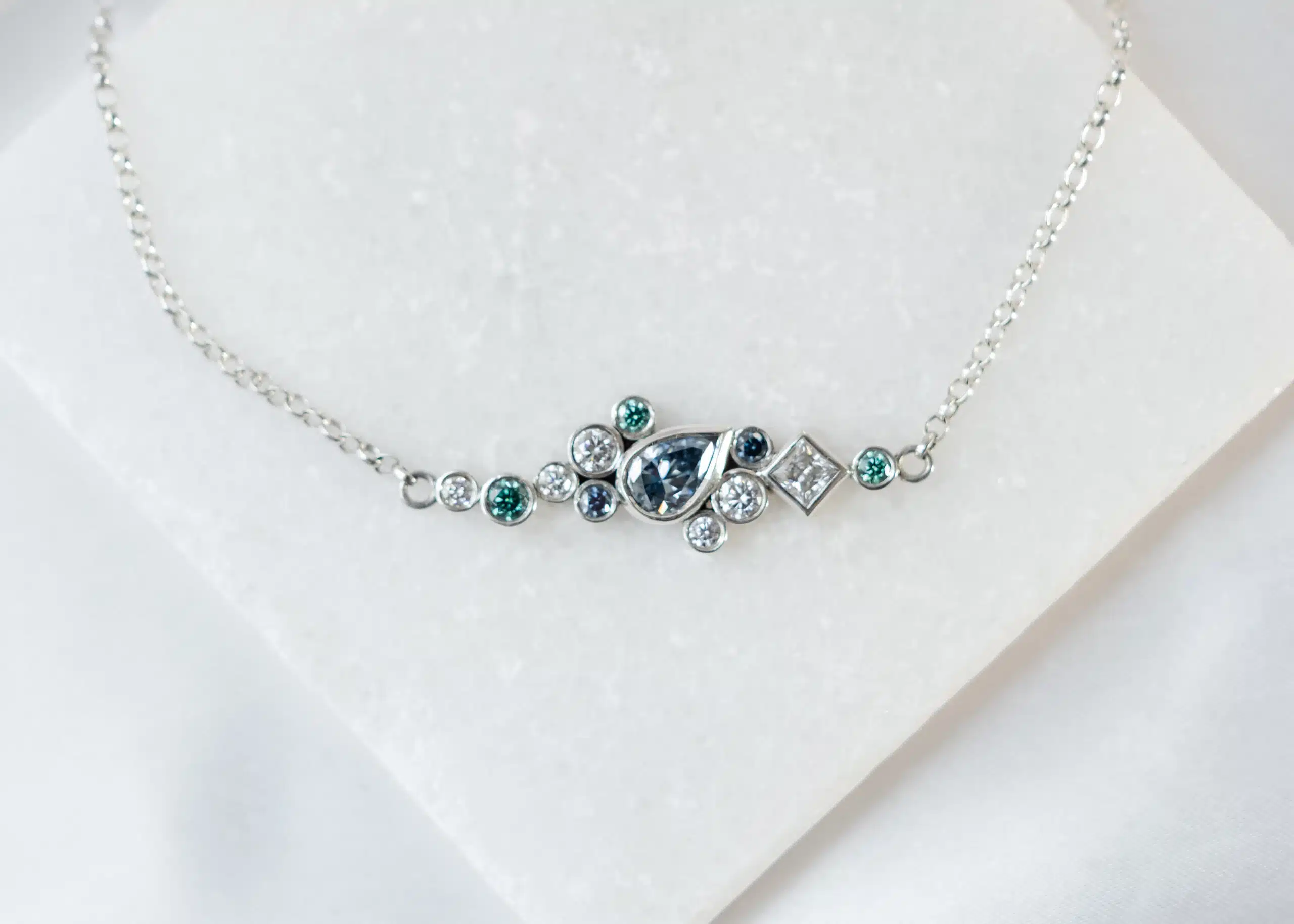 Sterling Silver Necklace set with a beautiful array of Moissanite stones