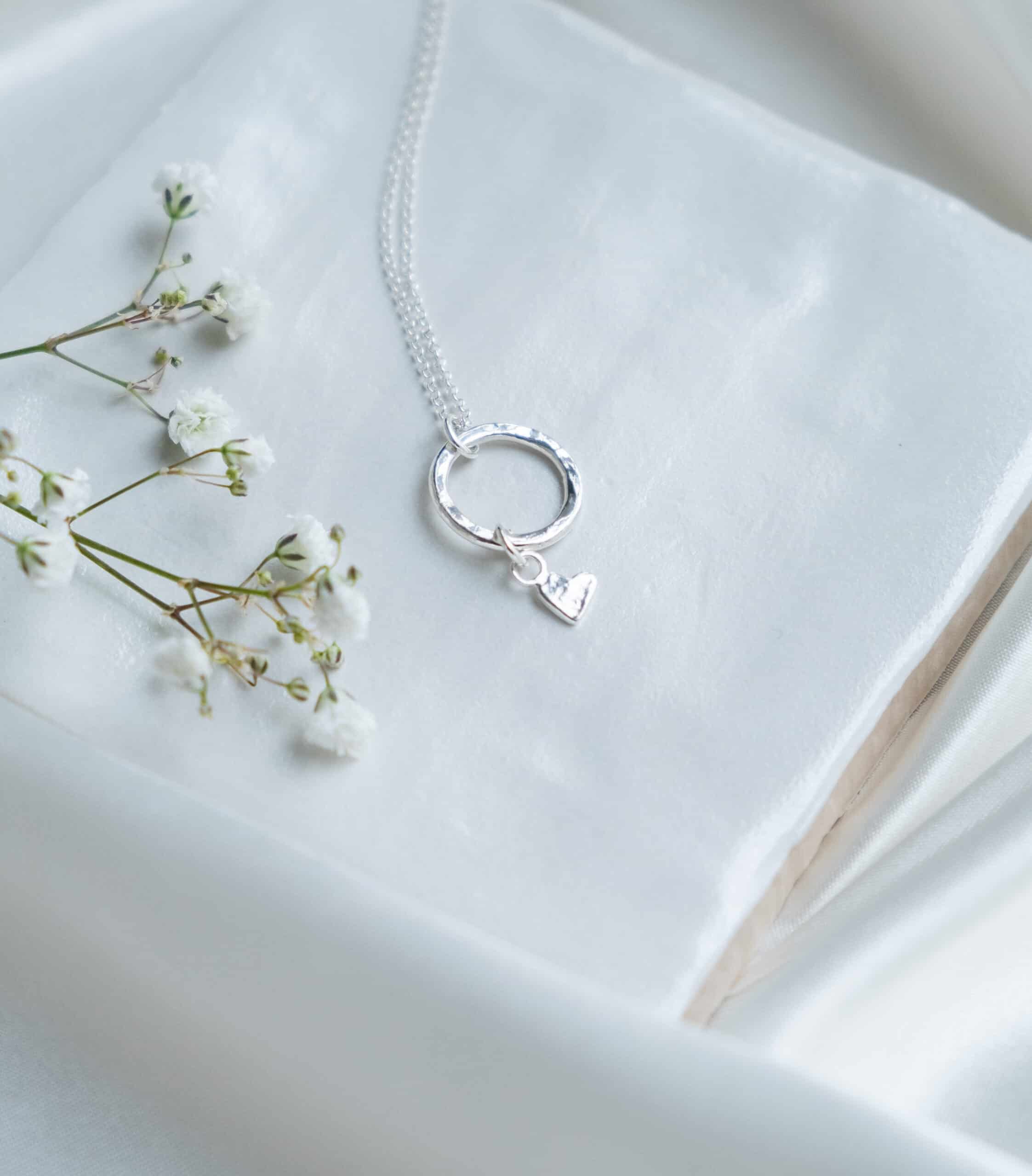 My wee Heart Circle necklace – Hammered simple classic circle necklace