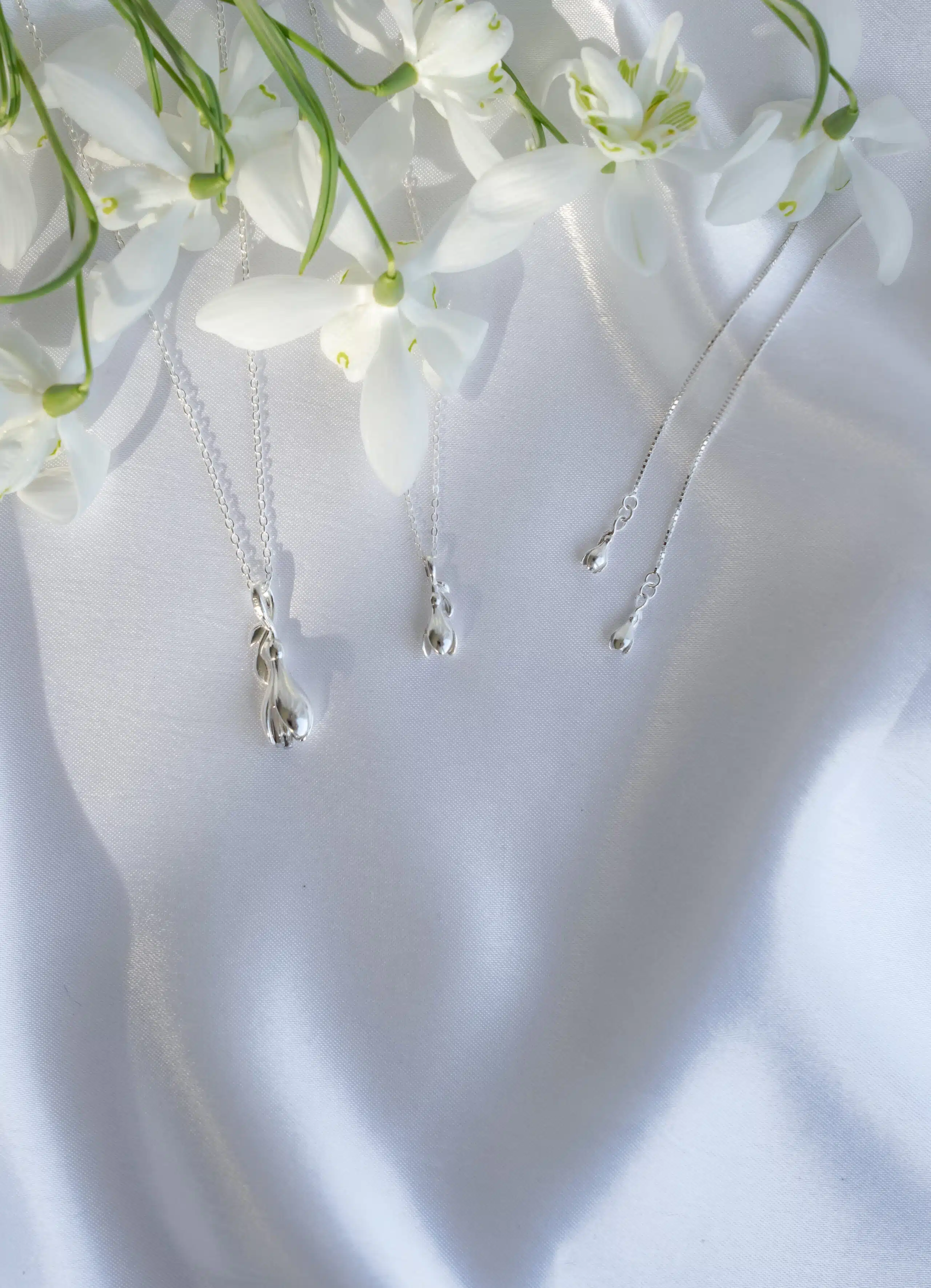 Home > Shop > Handmade Earrings > New Beginnings Mini Snowdrop Thread Earrings