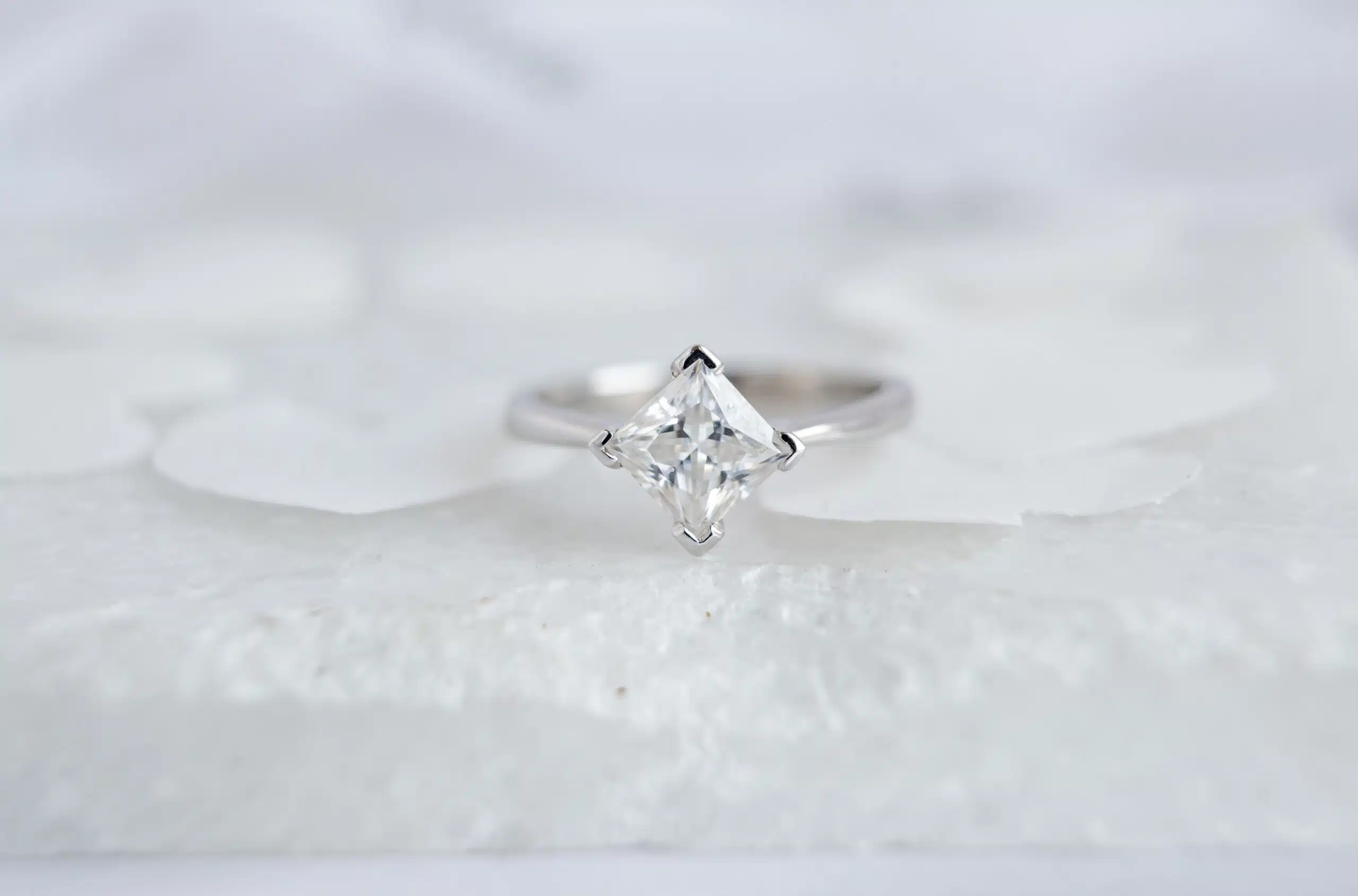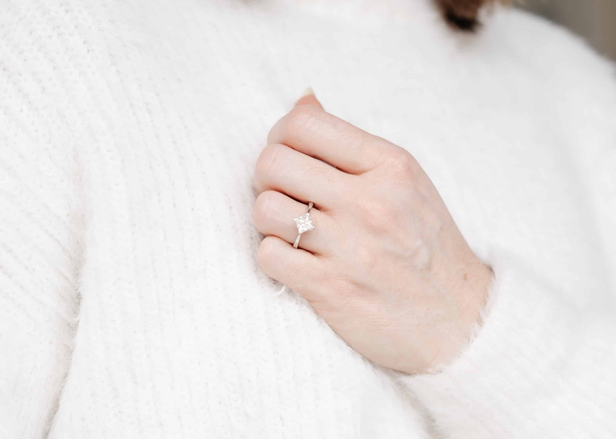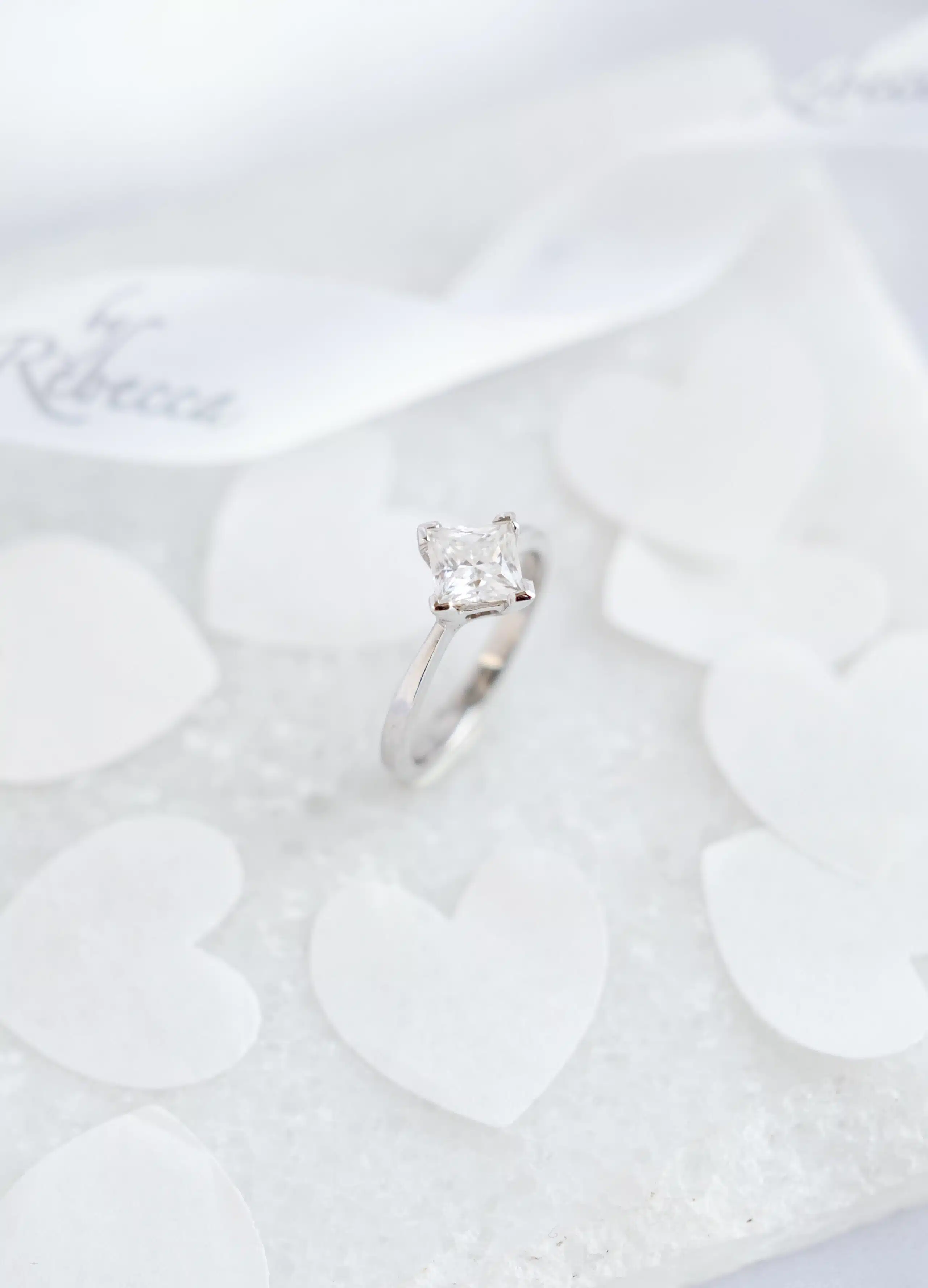 Home > Shop > One of a Kind > The Polaris Ring – 9ct White Gold Princess 1ct Moissanite Solitaire